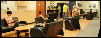 The Student Lounge is a welcoming and comfortable area where students can make and spend time with friends, play a game of foosball (table soccer), surf the internet, or enjoy a snack or drink from one of the many vending machines.